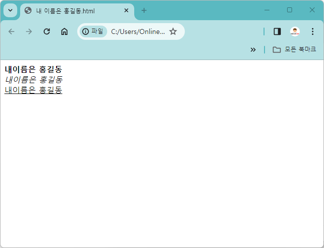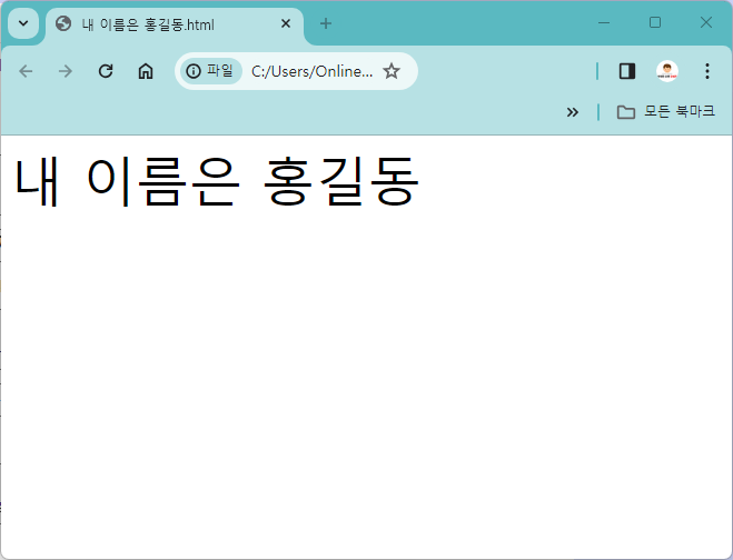 '내 이름은 홍길동'이라고 브라우저에 출력되었습니다.