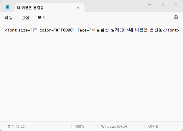 size의 숫자는 보통 1~7까지 적용되며(-도 사용할수 있긴 합니다. 예 : size="-1")